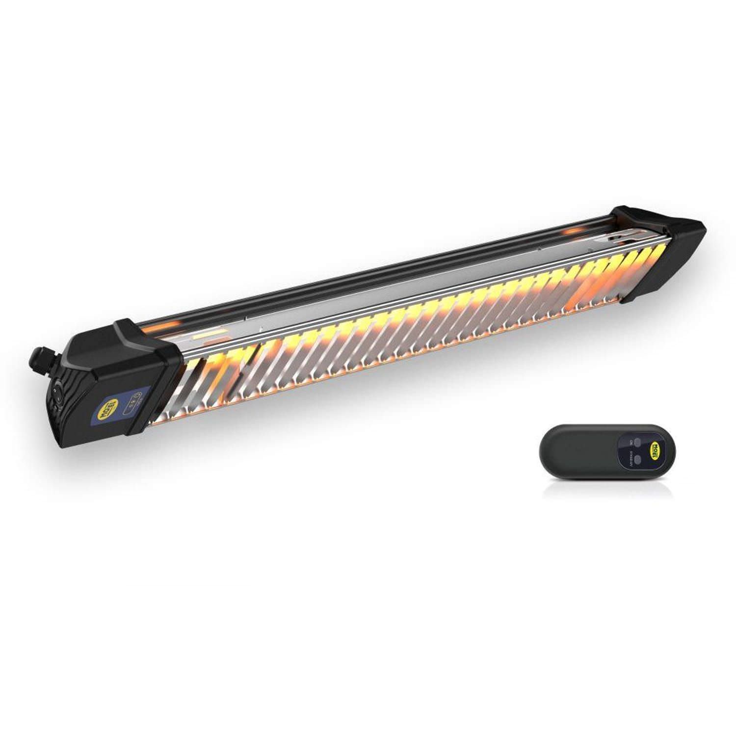 Calentador de infrarrojos de onda corta para uso en interiores y exteriores con protección IP65 Panel de infrarrojos para el montaje en la pared utilizando el soporte de pared incluido Calentador de interior y exterior con 1760W de potencia con mando a distancia, cable con enchufe Schuko y cadenas de suspensión Radiador mural de infrarrojos con cuarzo CONGELADO IR-A y lámpara de tungsteno tipo IR-A, 5000 horas de vida útil El calentador Moel 867N tiene una estructura de aluminio y Nylon PA relleno de fibra de vidrio – Color Negro